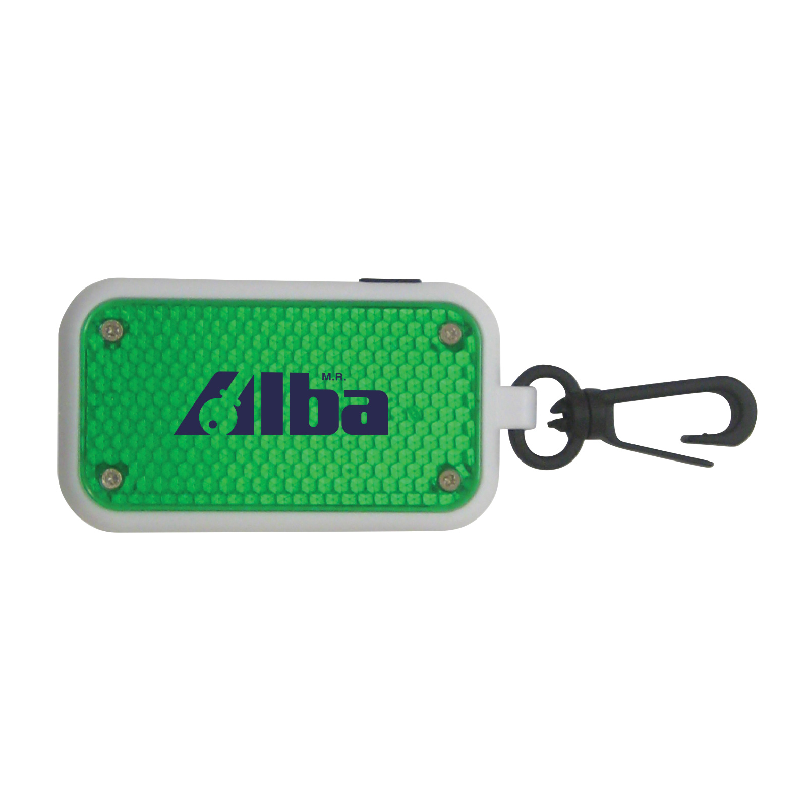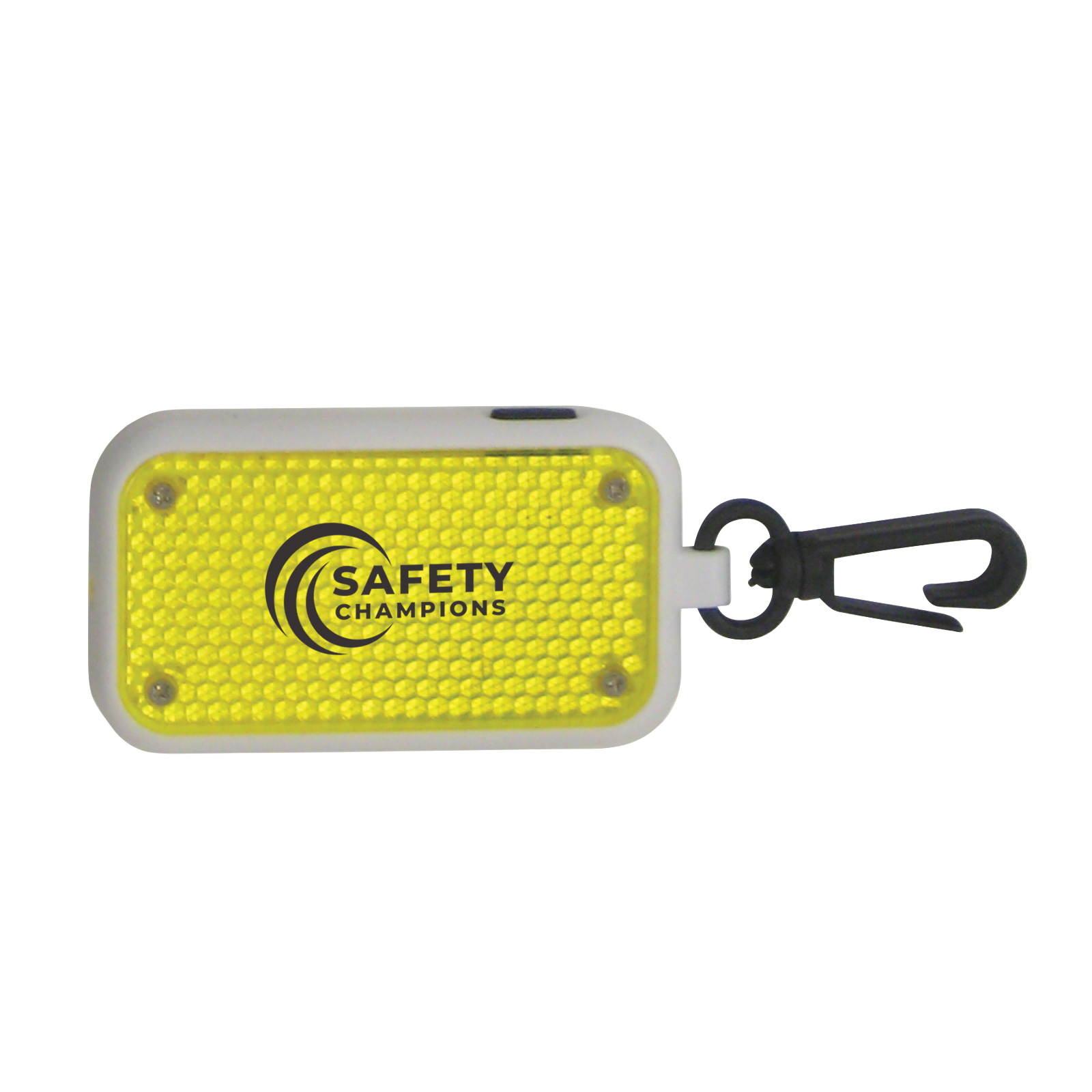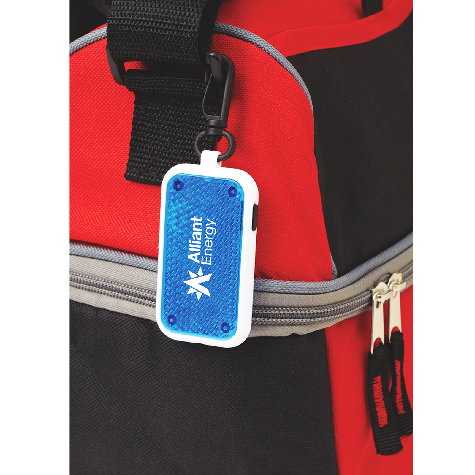 Clips onto a book bag, jacket, bike -- anywhere you want to sure to be seen! Bright flashing LED light activated at the press of a button. Sturdy clasp attachment. Two button cell batteries included.