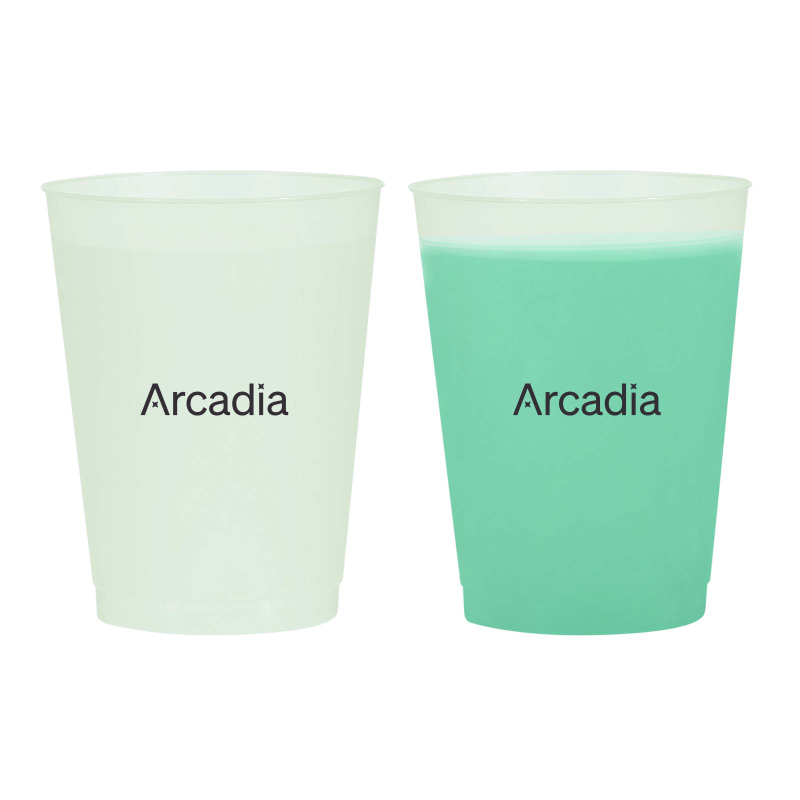 Watch the magic happen! This 16 oz. frosted stadium cup changes color with ice-cold drinks. It's reusable, sturdy, and made from BPA-free polypropylene plastic right here in the USA. The perfect event giveaway or promo swag that gets people talking and sipping!