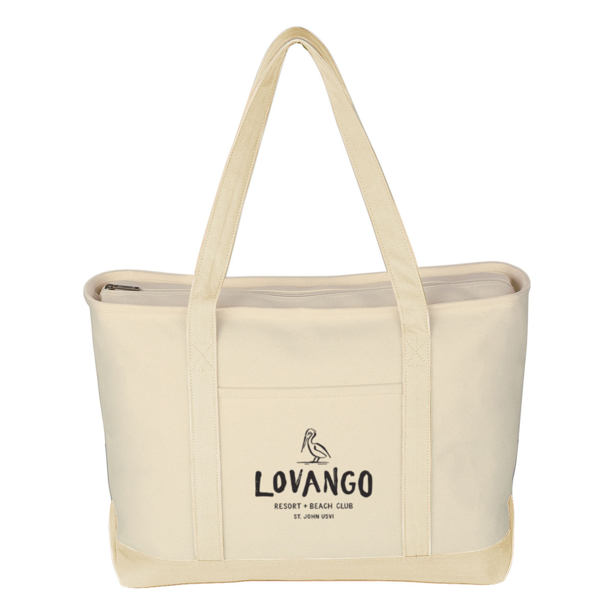 Spacious enough to accommodate all your daily must-haves along with any extra essentials you might need on a whim, the Large Starboard 24 oz cotton canvas tote is like having a convenient life enhancer by your side. This tote is built to last, reliable, and exudes an effortless sense of style. It not only showcases your brand with confidence but also effortlessly carries all your belongings.