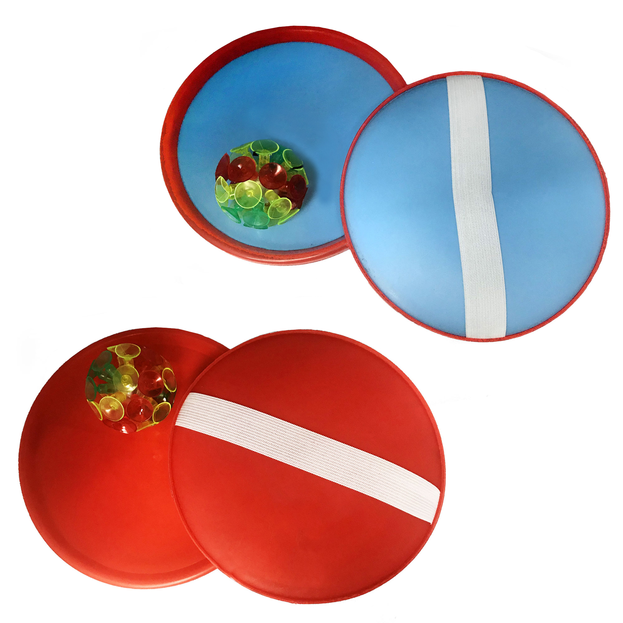 Light up the beach, pool, park or office with our suction cup game. Each 6 3/4" game features a lighted LED suction cup ball that puts on a multi-colored light show each time it makes contact with the catch pad or any other hard surface. The light stops when play stops to protect the battery. Each set includes two catch pads with elastic strap and one suction cup ball. Assorted colors, non-replaceable batteries included.