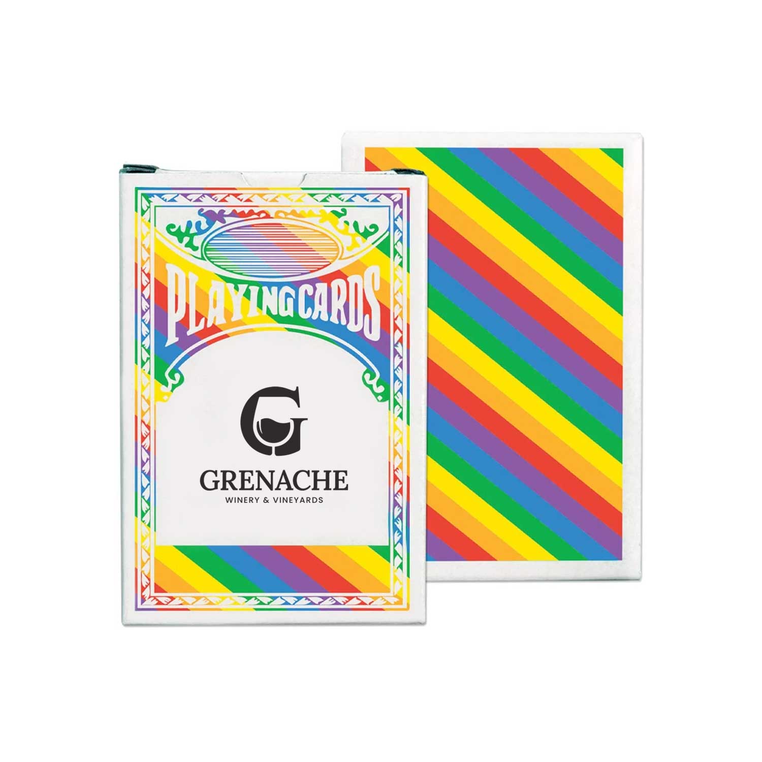 Deal out some serious color with these rainbow playing cards featuring a bold, bright card back design. They are lively, memorable, and guaranteed to make any brand shine a little brighter.