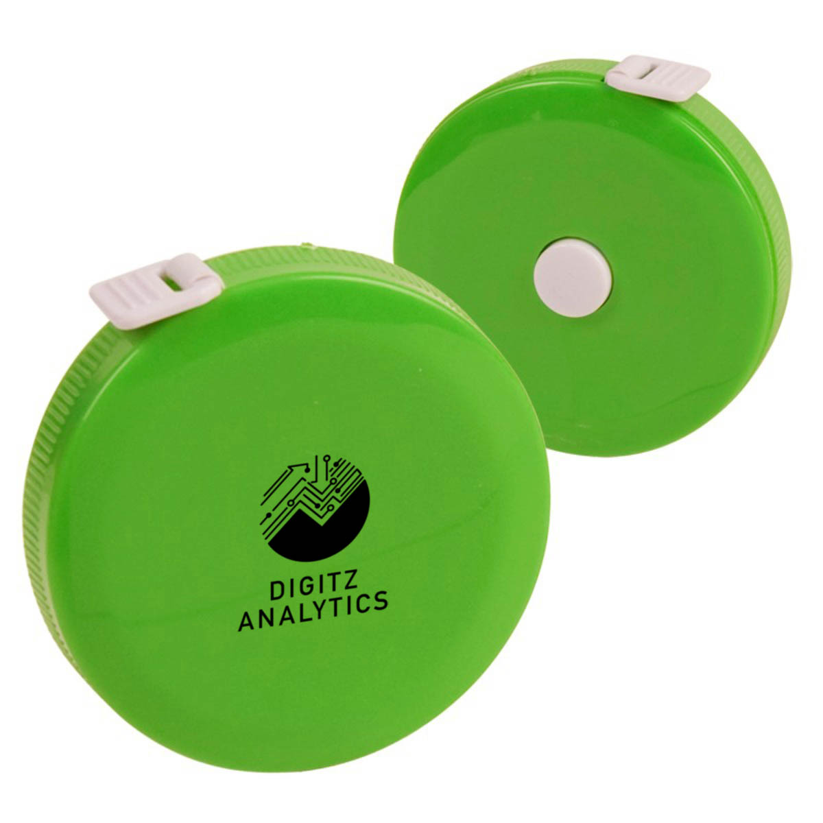 Here's a great giveaway that will be used over and over again! This round tape measure can measure up to 5FT (60 inches) for those smaller projects and features a push button to retract the tape smoothly back into the housing, a PVC ruler and an ABS plastic case, where you can add an imprinted brand name, logo, or message. It also features inches and centimeter measurements. An essential tool for professionals, DIY enthusiasts, and anyone in need of precise measurements in a portable format.